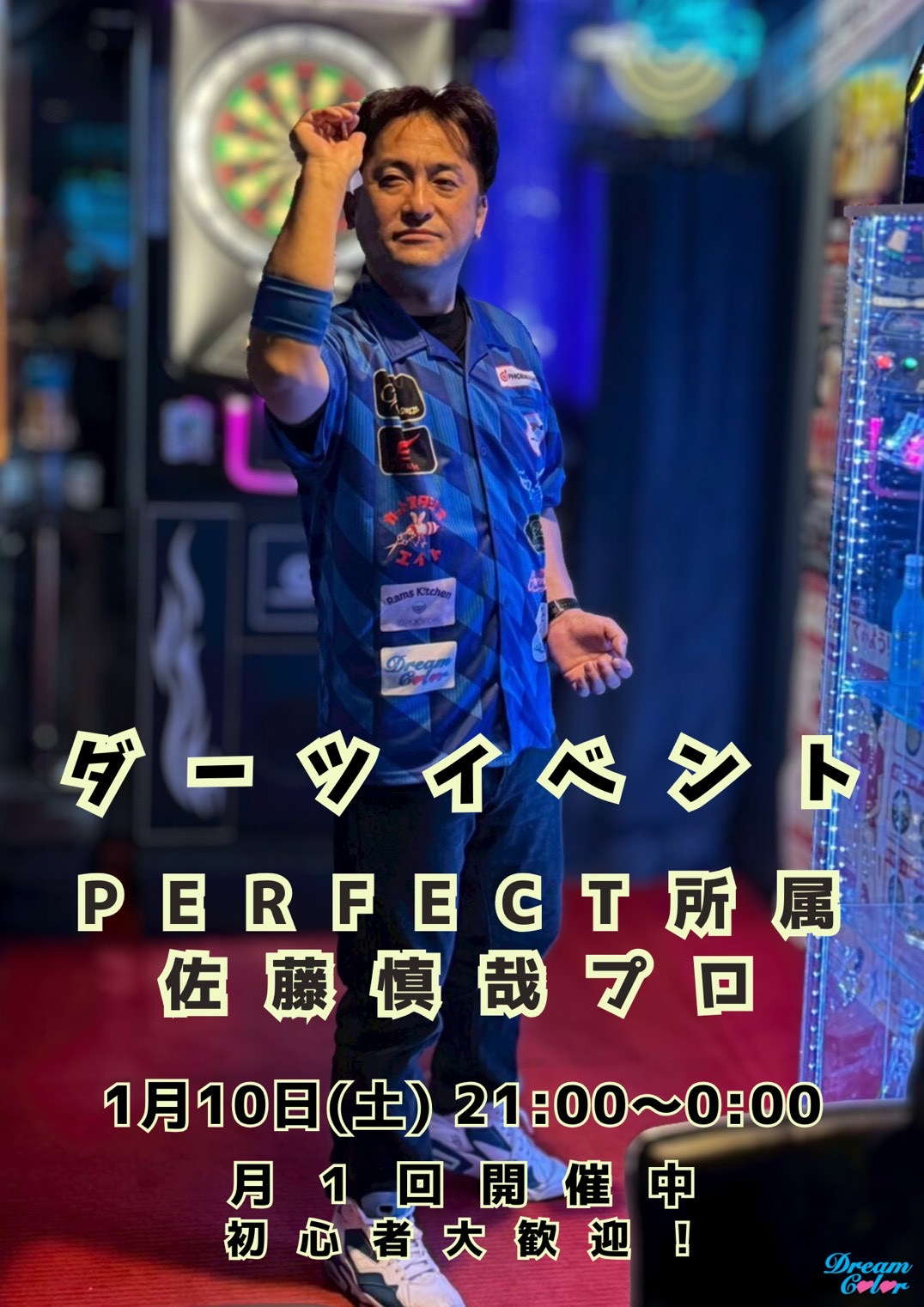 perfect所属 佐藤慎哉プロ来店イベント 一緒にダーツしたりワンポイントレッスンやアドバイスしてもらう事も出来ます このイベントは月一回開催中 初心者大歓迎!! さらに上達したい方もぜひーーー!