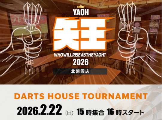 2/22(日)15時集合・16時スタート‼ 毎月恒例のダーツシングルストーナメント‼ 日頃の練習の成果をここで‼ 初心者・グループでの参加も大歓迎♪ ※当日はライブカードご持参ください‼ ハウストーナメント参加者限定‼ 終了後¥1,000で終日投げ放題♪