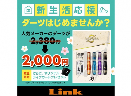 ダーツはじめるなら! Link松戸店へ! 今なら人気のダーツメーカーのダーツが2,000円でGETできちゃいます! さらに数量限定のオリジナルカードが貰えますよ🍀*゜ 是非お気軽にご来店下さい(* 'ᵕ' )☆